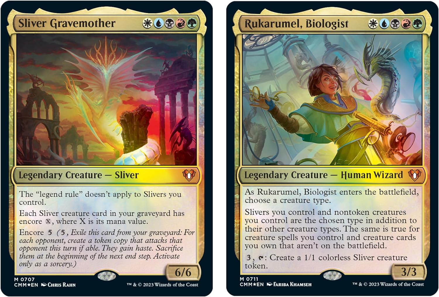• FIVE-COLOR COMMANDER DECK—get the Sliver Swarm Commander Deck, a White-Blue-Black-Red-Green 100-card deck containing 2 Foil Legendary cards and 98 nonfoil cards, and battle your friends in epic, multiplayer games